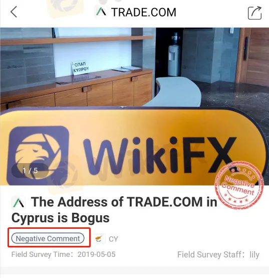 TRADE.COM is currently under CySEC's normal supervision. Nevertheless, WikiFX alerts investors to the risks of this broker considering the increasing complaints recently. WikiFX also reminds investors to check the authenticity of a broker‘s license, regulatory information and market data before choosing the broker. Click WikiFX APP to check broker’s qualification now.