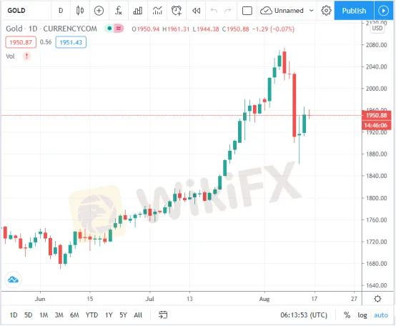 to other fresh highs after recording $1,920 on July 27. As of the time